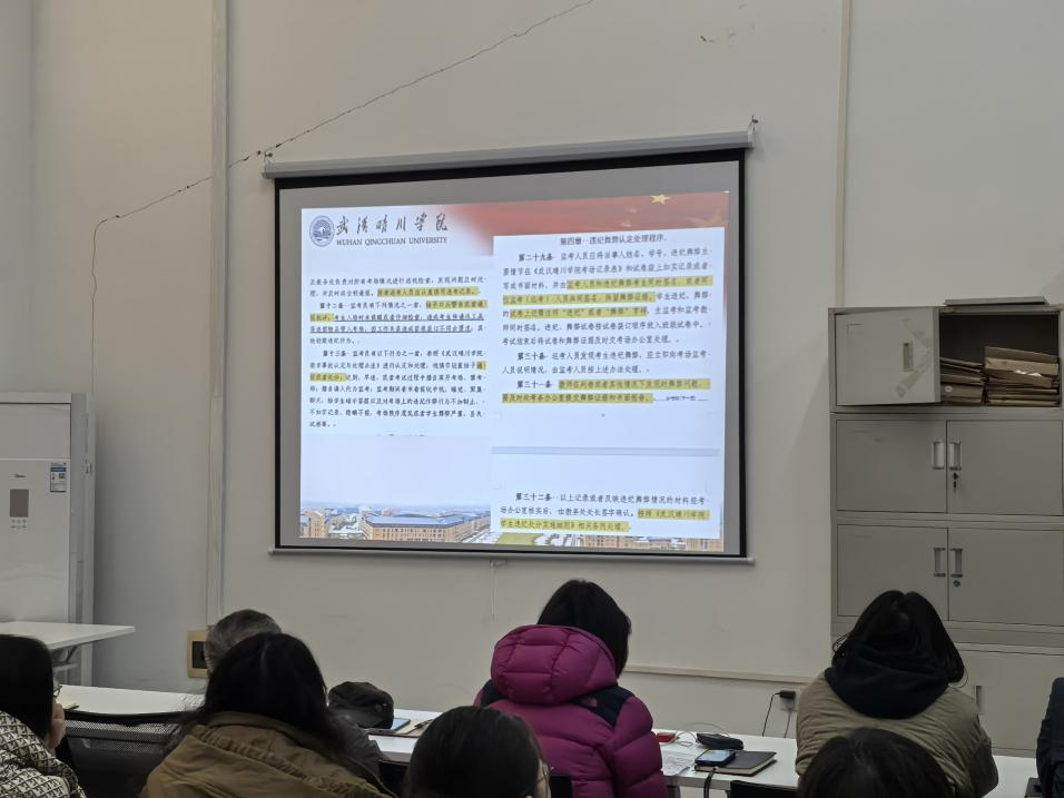 会上,公司教学秘书胡慧老师首先带领大家详细重温了《PA视讯考场规则(修订)》。胡老师通过生动的案例分析,强调了监考过程中公正性、严肃性和保密性的重要性,确保考试过程的规范性和有效性,这与本科合格评估中对于考试管理的严格要求相契合。胡老师还详细列举了监考前的准备工作、监考过程中的注意事项以及考后试卷的交接流程,为教师们即将到来的期末考试监考工作提供了明确的指导。
