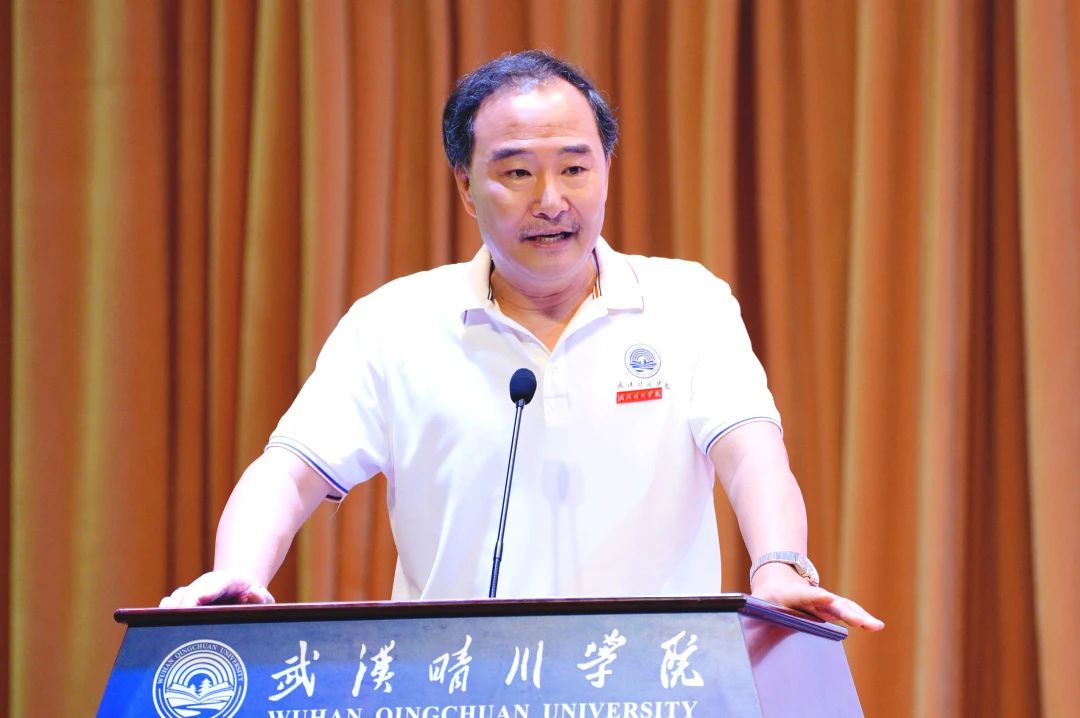 汪彬董事长谈到,《黄河大合唱》具备宏大民族音乐史诗的规模和制式,它有完整的诗剧结构、多样的合唱形式,有丰富独创的音乐语汇与艺术风格,有鲜明的人物形象和象征意义,个性而全面地表现了中华民族伟大的精神与宁死不屈的气节。他激励晴川学子,深刻感悟经典旋律中饱含的革命激情和音乐力量,赓续红色血脉,传承中华民族团结一致、勇往直前的顽强精神。