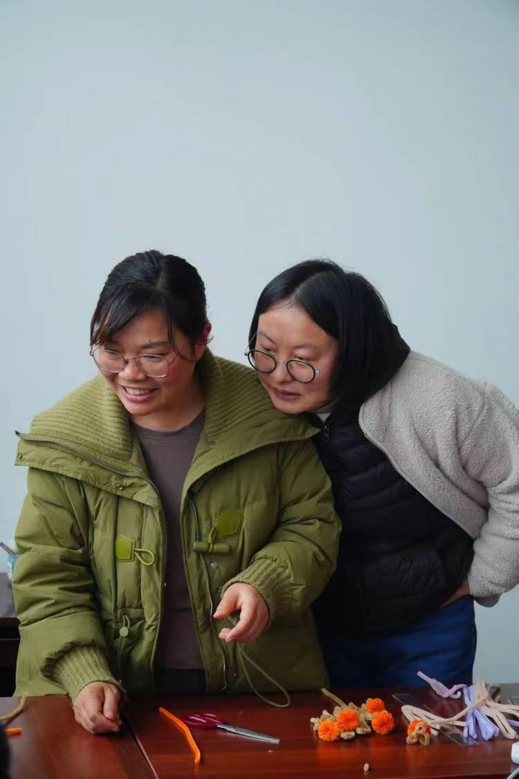 在两个小时的创作时间里,会议室内充满了欢声笑语。女教师们相互交流心得,互相赞叹着彼此的作品,共同享受着花艺带来的乐趣和满足感,每个人的脸上洋溢着满满的笑容,就像他们手中的花一样明媚开朗。