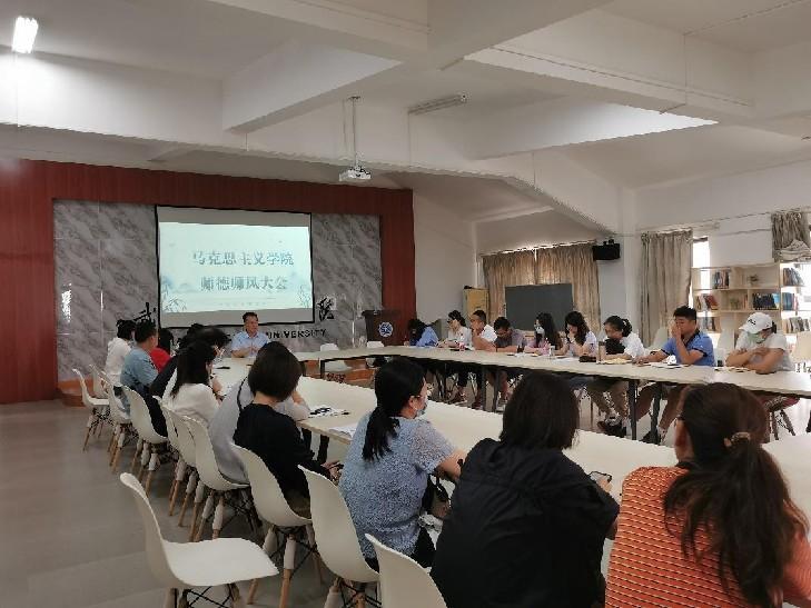 李经理强调,建设师德师风是一项长期性工作,并对全院老师提出了几点要求:一是全体教职工要深刻领会本次会议精神,充分认识到建设师德师风的重要性;二是全体教职工要提升职业道德水平,切实做好员工成长成才的引路人;三是全体教职工要提升职业素养,履行教师职责,规范从教行为。