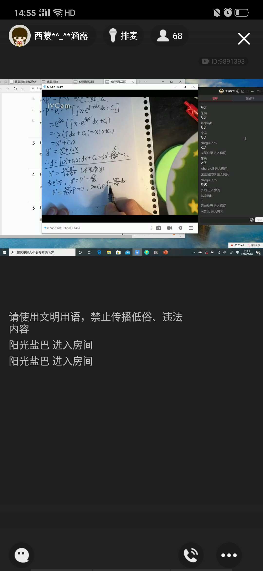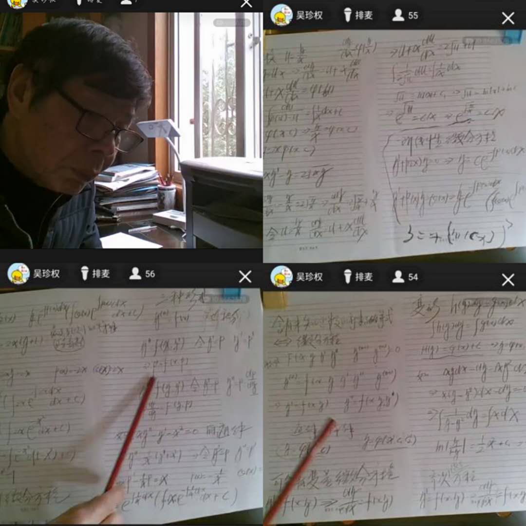 2、高数任课教师吴珍权老师,在教学中采用“直播讲课+直播答疑+练习”的教学模式,吴珍珍权老师每次课在前一天就会发布第二天的学习任务及安排,鼓励大家提前预习,带着问题去听课,在课堂中发现问题,解决问题,做到真正弄懂所学知识点。对于慕课讲解不够细致的知识点,还会在直播答疑过程中进行知识补充和拓展。