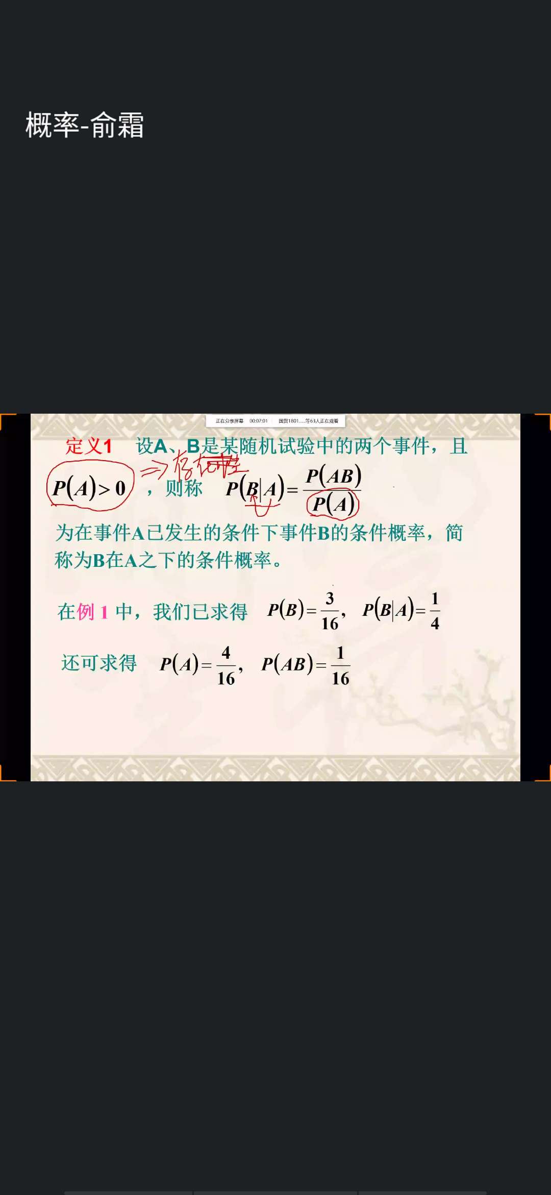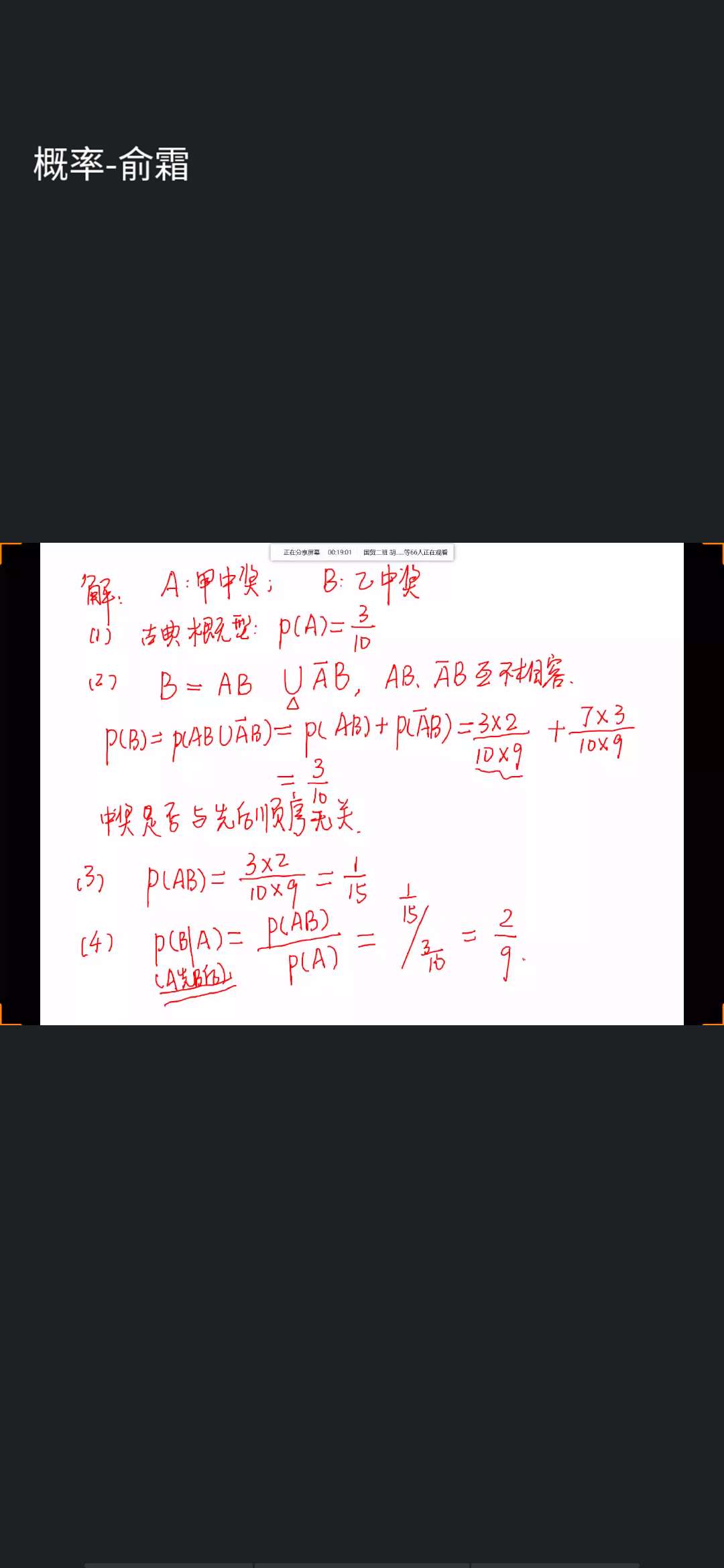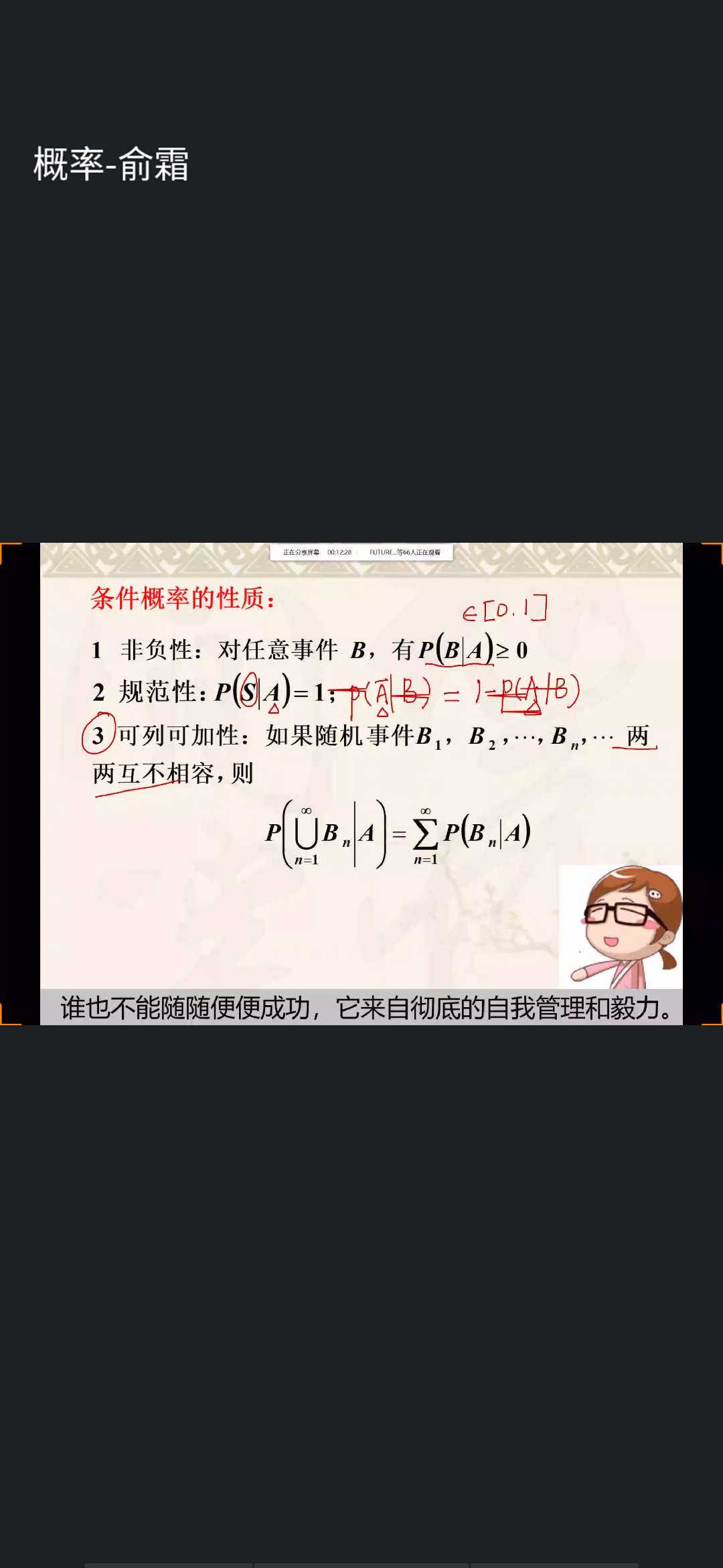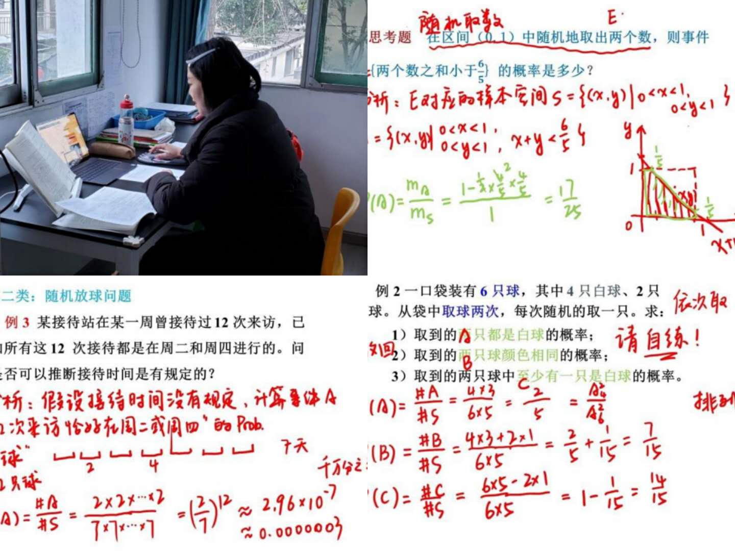 6、概率论任课教师俞霜老师,在教学中采取“直播+慕课+练习”的混合教学模式,借助课件为同学们耐心讲解每条性质及其应用,通过典型例题帮助同学们更好的理解概率论的知识点,“谁也不能随随便便成功,它来自彻底的自我管理和毅力。”时刻提醒着同学们,在家学习也不能放松对自己的要求。