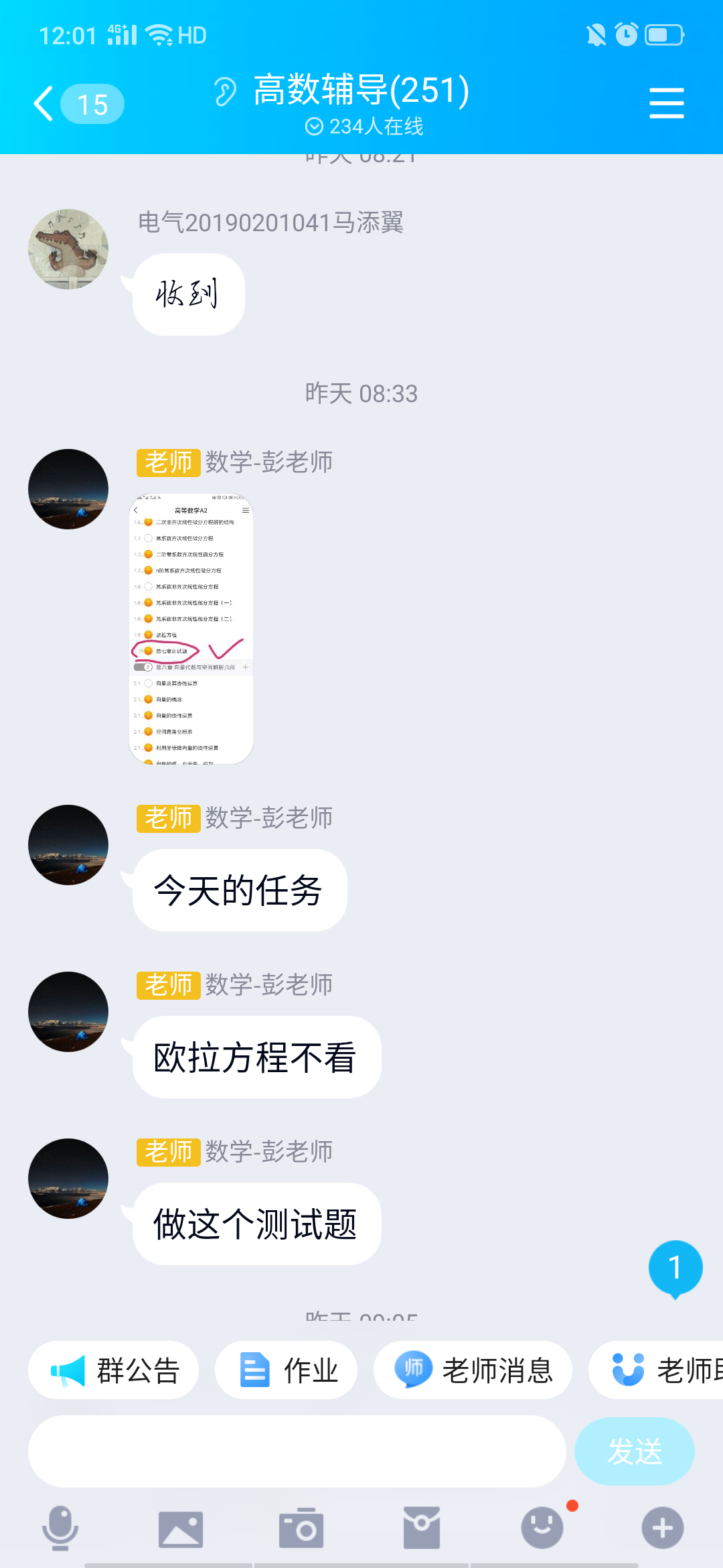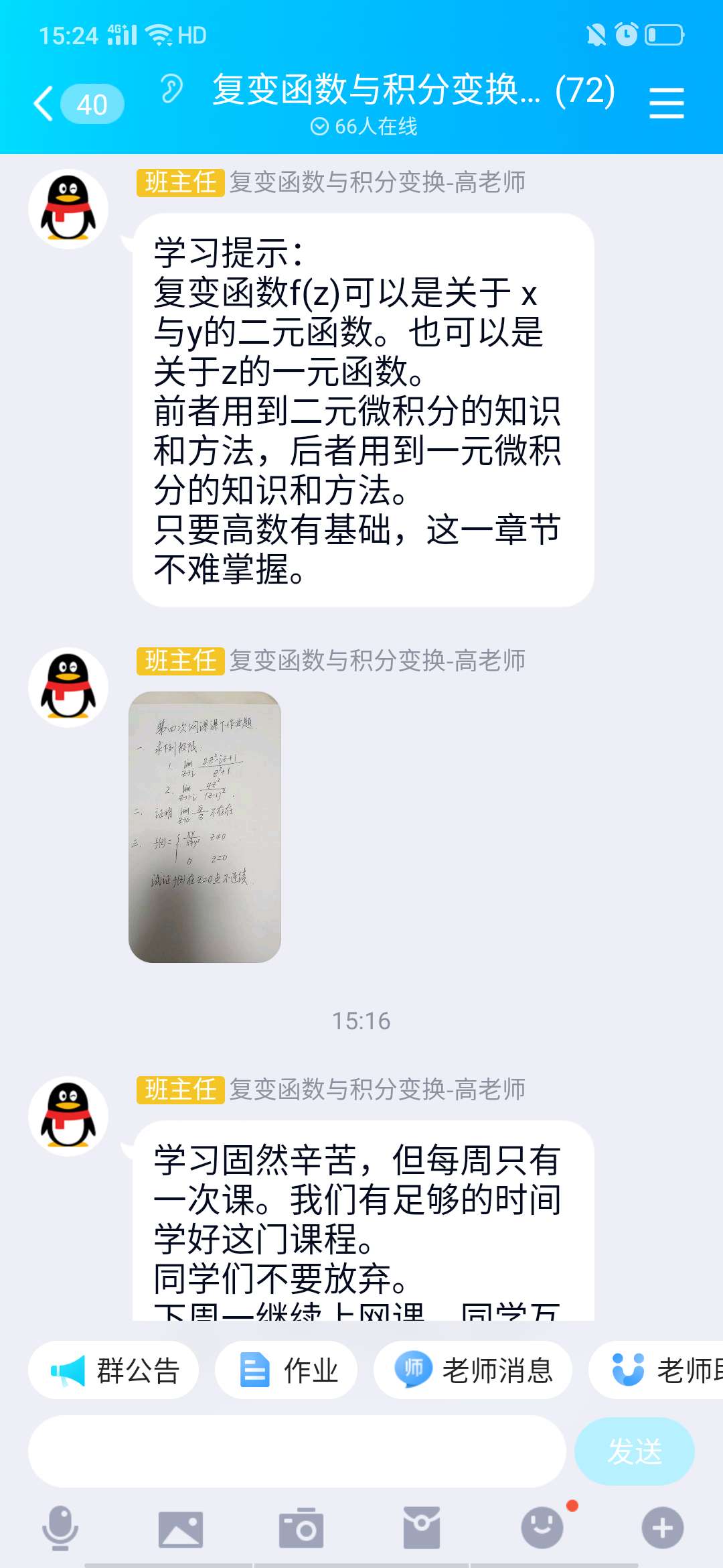 5、高数任课教师孟新焕老师,在教学过程中充分利用“群课堂”的功能,向同学们讲授知识、答疑解惑,课前还会及时向同学们发布课件及学习任务,方便大家熟悉新知识;孟老师每堂课都会公示提醒没有及时签到的同学,促使同学们按时上课,要求同学们在家也不能放松,一定要严格要求自己。