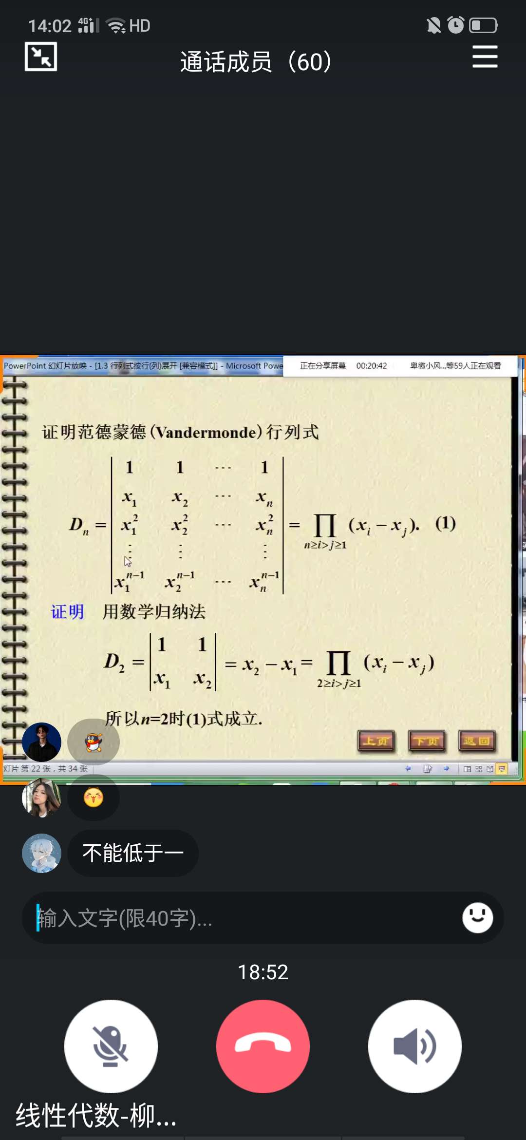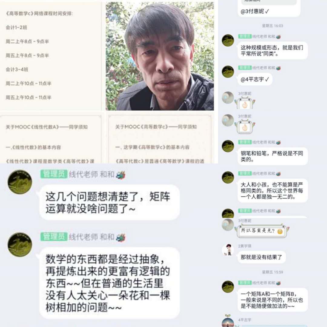 9、线性代数任课教师柳雪飞老师,在教学过程中合理规划教学进度,制定教学计划,担心慕课员工理解不透彻,观看慕课后还会开启直播,细致讲解重难点,并为同学们答疑解惑,偶尔网络不好,柳雪飞老师会及时解决,反复解释,在不影响教学进度的前度下,力求帮助同学们解决各种疑难杂症。