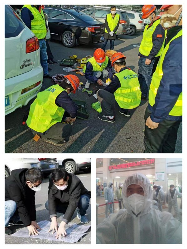 2月4日及2月14日,胡学瑞老师的丈夫与单位(中交二航局)同事们先后参加沌口体育中心方舱医院建设及武汉市第三医院(首义区)病房改造驰援抗疫。先后连续奋战38小时、20小时,主持并参与完成水电设计及安装工作任务。设计了污水集中装置并实现了自动收集功能,布设各类插座、开关、灯具近1500件,截止目前二航局驰援建设项目共11个,包括火神山、火眼病毒研究中心、武汉体育中心方舱医院等项目。