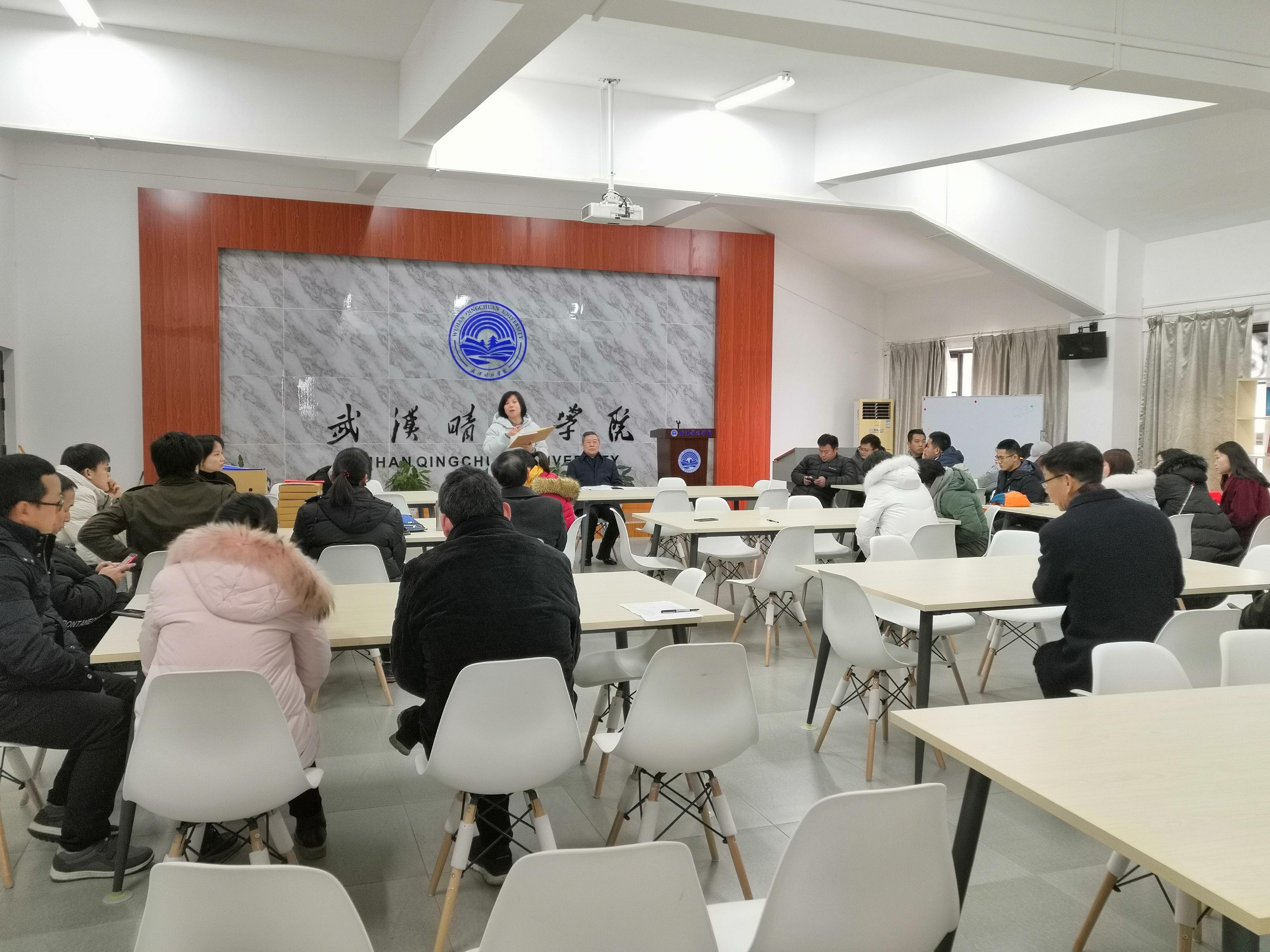 首先,夏主任祝贺全体教师新年快乐,由俞霜副主任首先对近期工作进行要求,俞主任主要强调三点:第一,对新学期的第一周的教学工作提出了具体要求,周一有课的老师带好教案、教学日历、教学大纲和教学PPT,提前10-15分钟到教室;第二,毕业生清考在即,请各教研室做好清考试卷的出题和审查工作,严格按照教务处的要求出试卷;第三,各教研室积极申报公司的核心课程,每个教研室至少申报一个。
