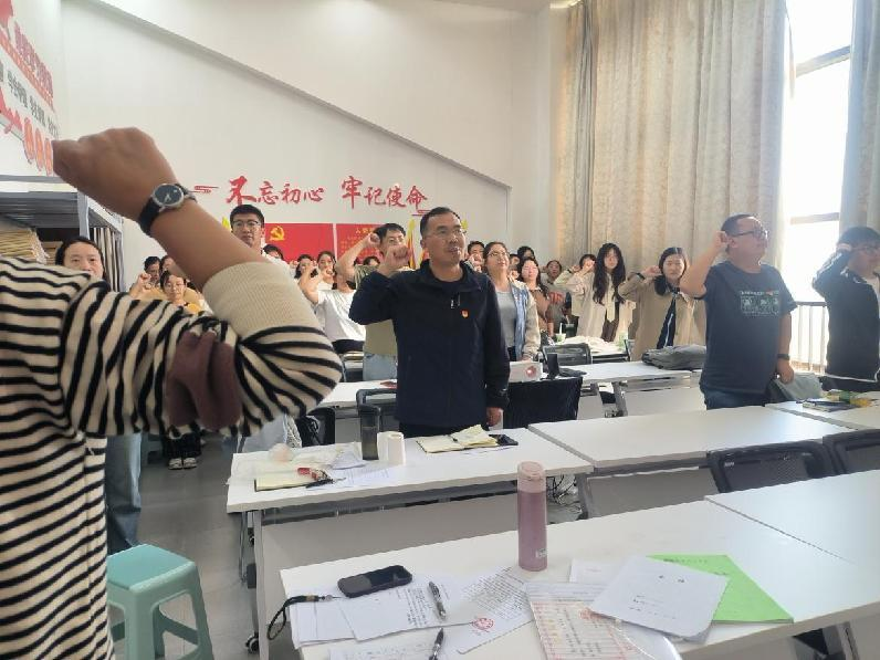 会议讨论了关于接收魏小涵同志发展为预备党员的问题。首先魏小涵同志分别从自己的思想、学习、工作、生活等方面向党组织进行了汇报并宣读了自己的入党志愿,入党介绍人介绍培养考察情况,然后由正式党员讨论并发表意见,并无记名投票表决,统计票数宣读大会决议。会议认为,魏小涵同志符合党员条件,一致同意接收魏小涵同志为中共预备党员。党总支书记王彦彦同志带领广大党员同志重温入党誓词。