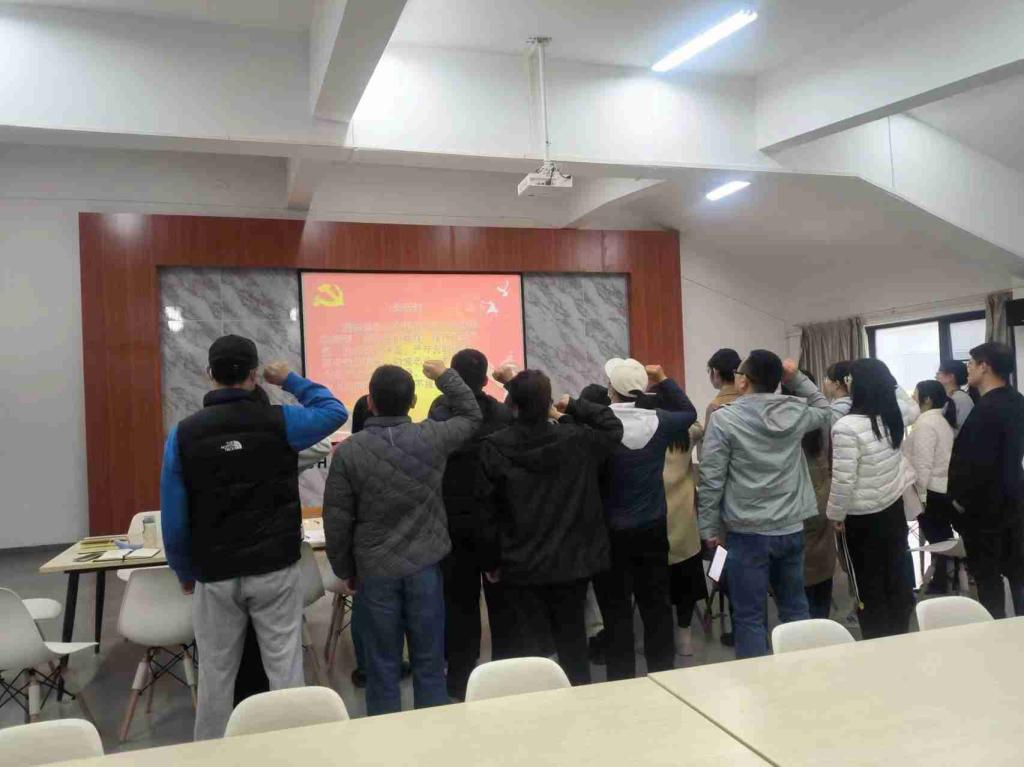 会议第四部分,全体党员教职工重温入党誓词,坚定初心。