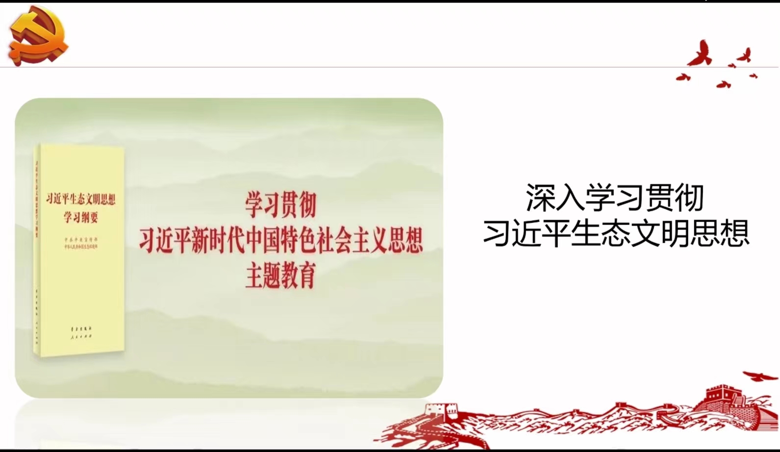 会议开始,马克思公司教工第一党支部书记王彦彦同志带领全体党员学习贯彻习近平生态文明思想,王彦彦同志围绕“人与自然和谐共生的现代化”,用通俗易懂的语言并结合党的二十大报告等文本进行分析,以习近平生态文明思想为视角,从这一重大命题的提出过程、提出原因、学理内涵、实现途径四个方面,深入阐释了“人与自然和谐共生的现代化”的相关内容。王彦艳同志的讲解既有宏观层面的理论阐述,也有微观层面的政策分析,在立足于文本,确保准确性的同时又兼具通俗性,加深了与会党员对于“人与自然和谐共生的现代化”的理解,为大家在生态层面把握新时代中国特色社会主义建设事业提供了启迪与思考强调教师要深入学习贯彻习近平生态文明思想,并将习近平生态文明思想践行于我们的社会生活。
