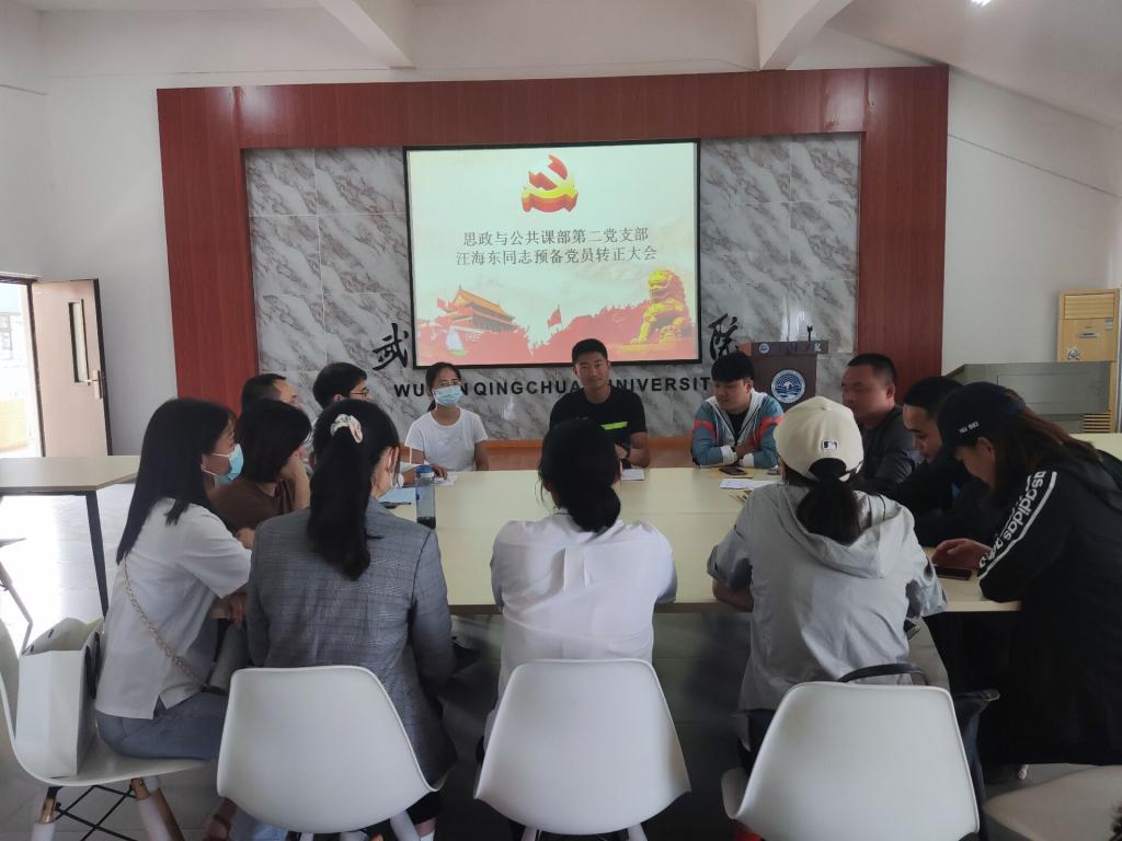 2021年10月6日下午2点,在综一506,公共课部第二支部召开了王海东同志预备党员转正大会。大会由第二支部书记杨毅主持,第二支部全体党员出席了会议。