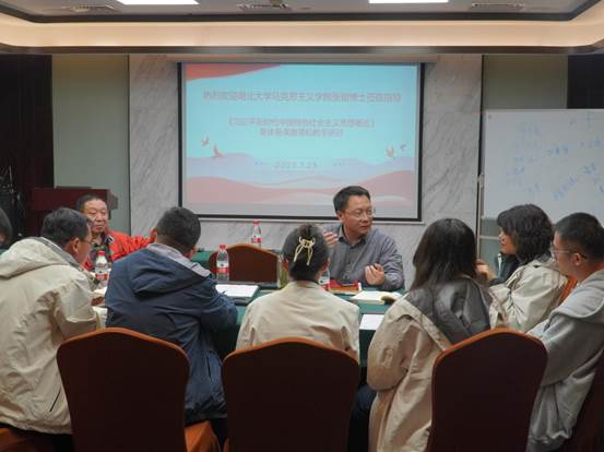 3月23日下午14点,习近平新时代中国特色社会主义思想概论教研室进行了教学研讨活动,由湖北大学教授张锴教授进行了授课培训,各位新进教师就自己教学中存在的困惑与张教授进行了交流讨论。张锴教授通过对《习近平新时代中国特色社会主义思想概论》课本的目录解读,分析了各个章节的重点难点后,着重对“导论”和第一、二章的授课思路进行了教学分析,提出要有章法、有教法、有重点、有思路,以点串线,融会贯通讲通讲好这门课程。
