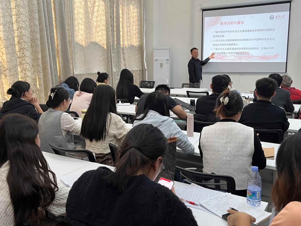 1.武汉大学公司教授付克新受邀来公司开展《毛泽东思想和中国特色社会主义理论体系概论》示范教学,内容围绕社会主义建设道路的初步探索展开。同时,付教授还针对教学过程中诸多可能存在的问题给出了许多建议。